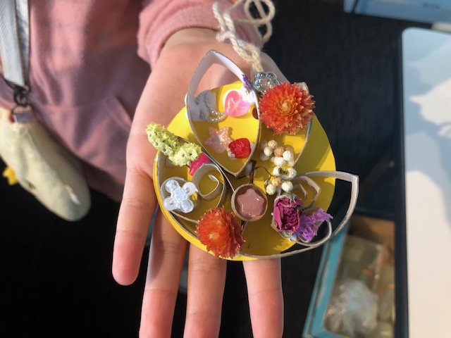 作品の一例を見ても分かるように皆とてもかわいらしいペンダントが出来上がりました。首から下げてアイーナ内を回って歩くことによって宣伝効果もあったようです。