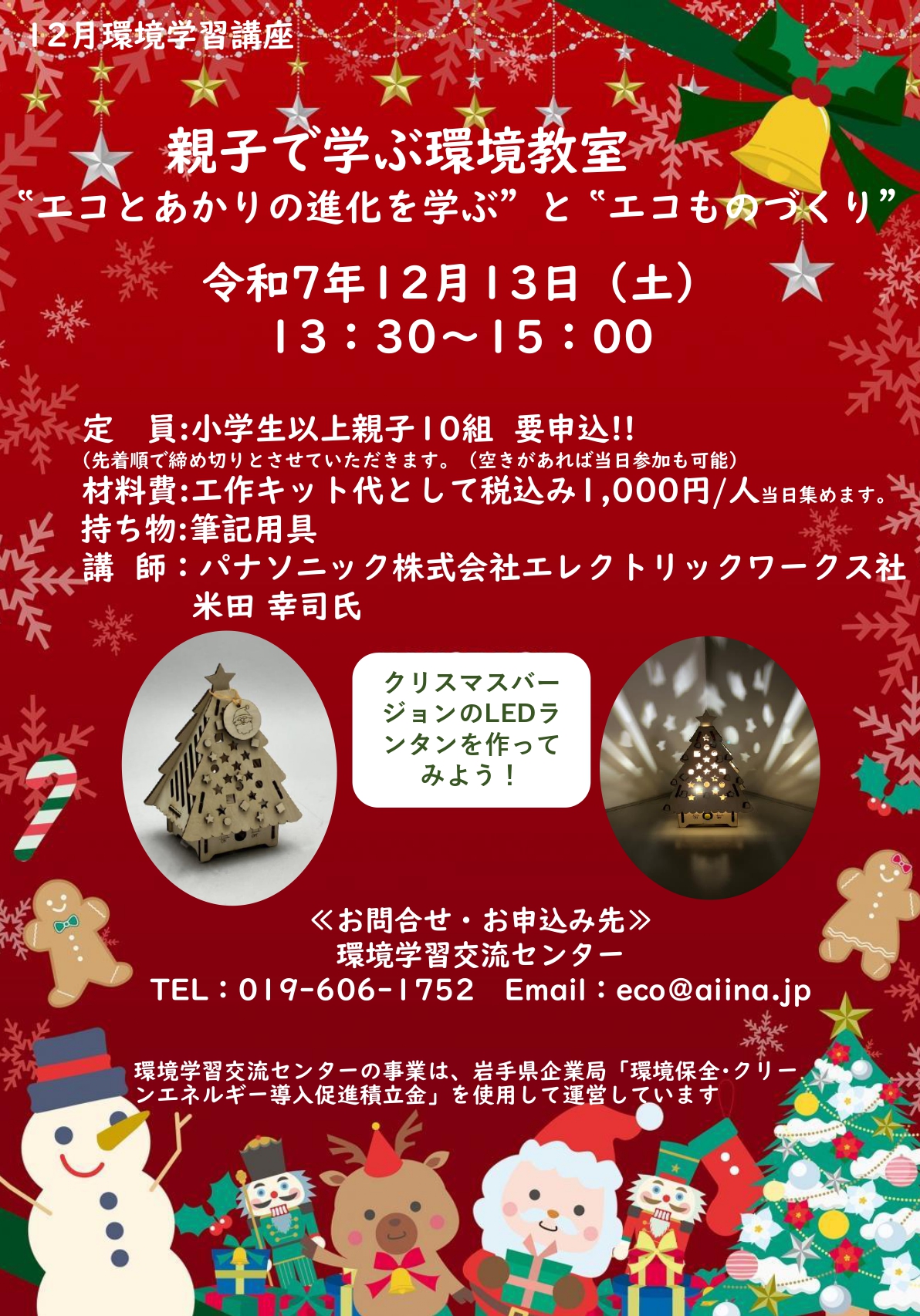 材料費:クリスマスバージョンランタンキット代として1,000/人 税込み(当日集めます)