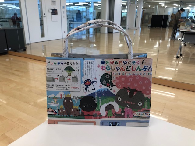 新聞エコバッグの使い道としては親しい人に気軽に何かを上げるときに使う。また、取手を付けずに野菜を種類別に保管するときに使う。生ごみ処理の入れ物にするなど使い道は多そうです。基本は古紙としてきちんと資源に出すことが大切です。「お茶っこの会」もメンバーによる新たな使い道のアイディアなどを考えて様ざま活用していただけたら嬉しいですね。