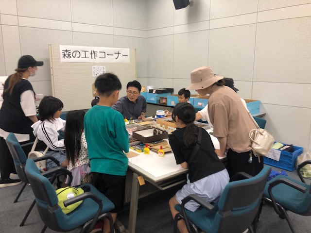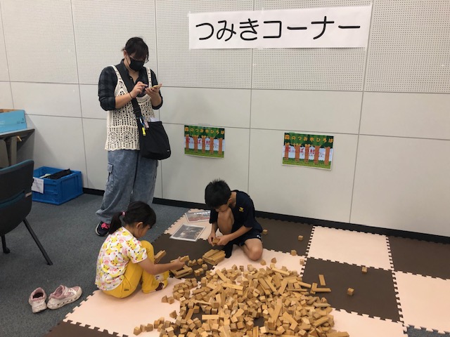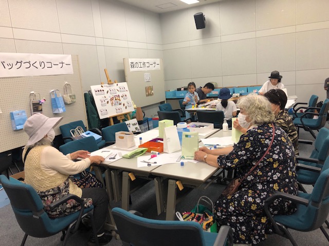 内容:新聞エコバッグづくり・リサイクル封筒バッグづくり・木の実の工作体験・積み木