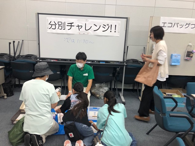 出張環境学習会は室内での実施でしたがこちらにも昨年度を上回る642名の方にご来場いただきました。久慈市の人権・交通安全・ごみ分別チャレンジコーナーに加え環境学習交流センターからは積み木・木の実の工作体験・リサイクル封筒バッグづくりを実施し、皆様に楽しみながら学びを深めていただきました。エコチェックアンケートも記入しながら自分の家庭のエコの取り組み状況について考える機会となったようです。