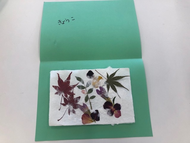 押し花・押し葉・和紙を飾り付けるのが楽しい!それぞれ思い思いに飾り付けをして・・・