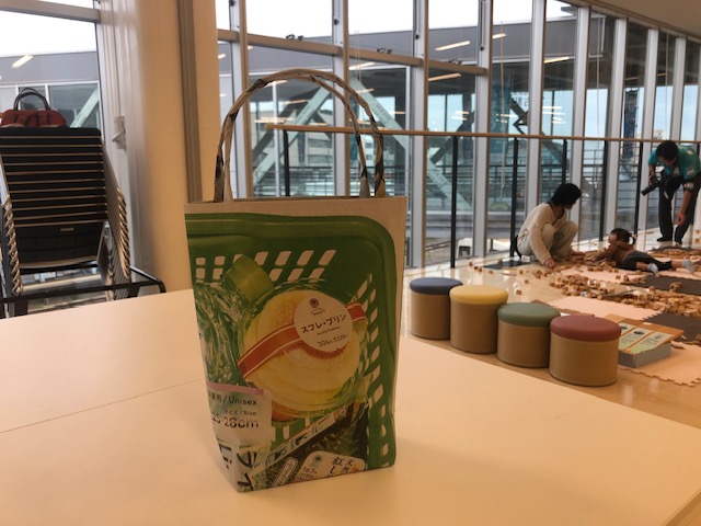 センターでは今年度からコピー用紙の包装紙も活用してエコバッグをつくっています。