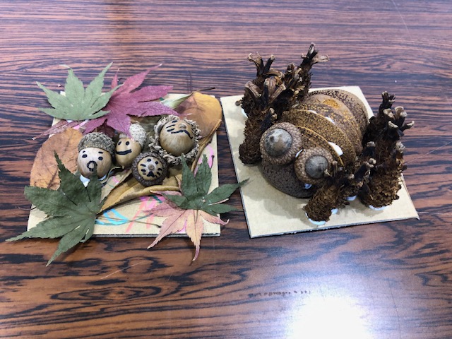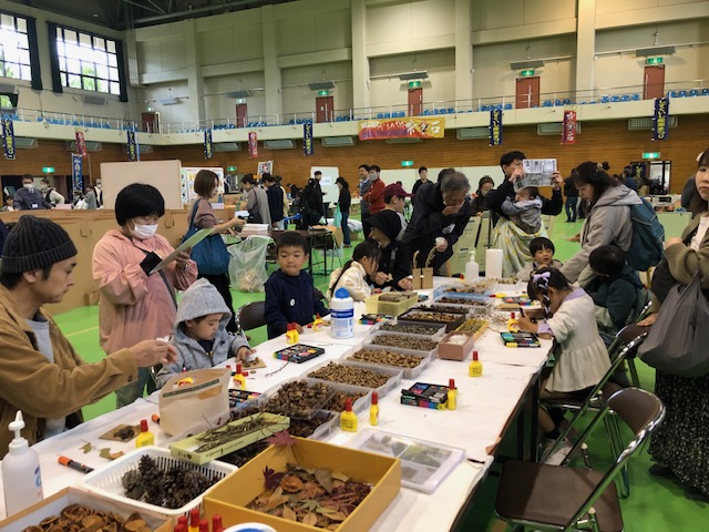 木の実の工作では様々なアイディアの作品に脱帽です。栃の実の皮を見た瞬間に作品のイメージがわいたといって付き添いできたのにはまってしまったお父さんの作品はとてもユニークで素晴らしい出来栄えでした。子供だけではなく大人の方にも楽しんでいただけた2日間でした。参加したくれた皆さんありがとう!!