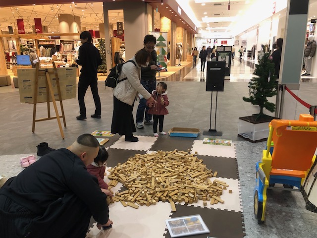 間伐材で作った積木も小さなお子様連れには好評でゆったりと楽しんでいただけたようでした。