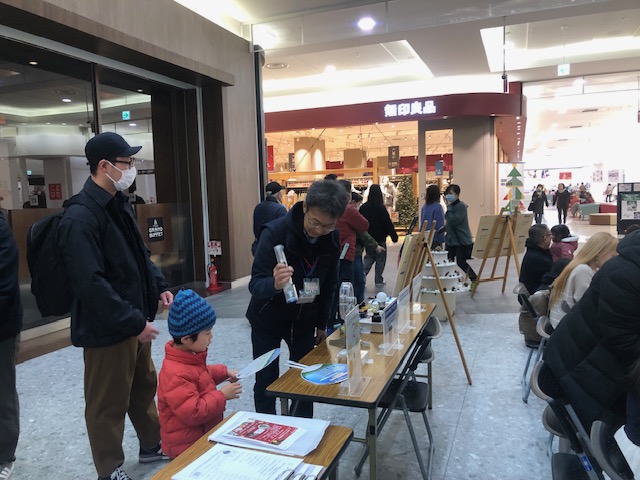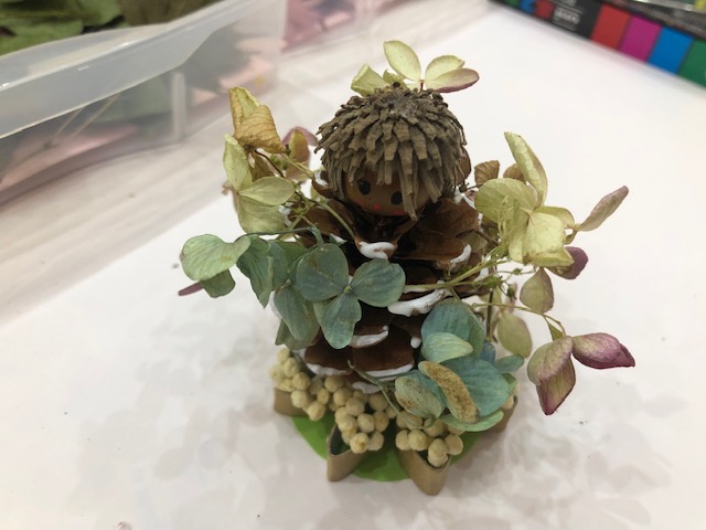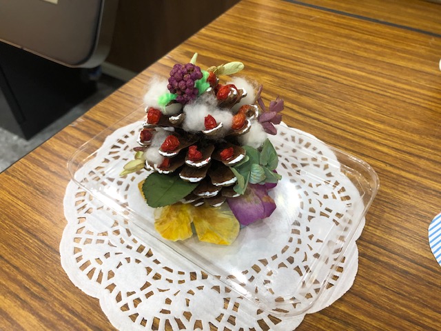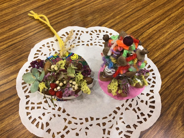 大型商業施設での実施ということもあって朝からたくさんの方に興味を持ってご参加いただくことが出来た。木の実やドライフラワー等を使ったミニミニツリーとオーナメントは12月の季節にふさわしいプログラムの提供となった。熊騒動もあり自然の中に出掛けることが出来なかった年でしたが、センターでこれまでに採取し保存していたドングリやまつぼっくりを提供し、皆様に楽しんでいただくことが出来ました。